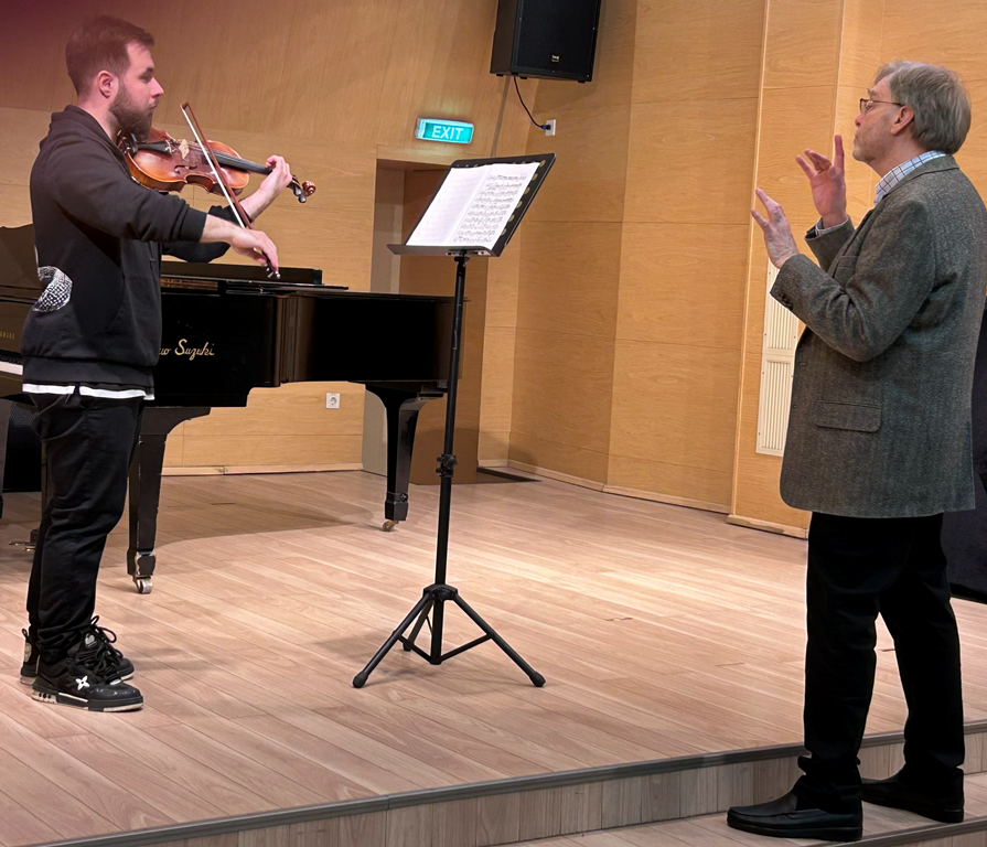 Organized with the support of Dr. Alina Nauncef, Associate Professor of violin and Vice-Dean, the sessions featured six students performing a diverse repertoire ranging from Johann Sebastian Bach and Felix Mendelssohn to Niccolò Paganini and Ernest Chausson, under the guidance of the American professor.